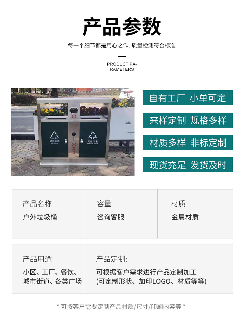溫州東鴻金屬制造有限公司提供的不銹鋼商用戶外方形環(huán)衛(wèi)垃圾箱,適用于小區(qū)、工廠、餐飲、城市街道、各類廣場(chǎng)、企業(yè)單位、花園、公園、學(xué)校、碼頭、風(fēng)景旅游區(qū)等公共場(chǎng)所,可按客戶的需要定投產(chǎn)品尺寸、材質(zhì)和印刷內(nèi)容,咨詢電話0577-88321654